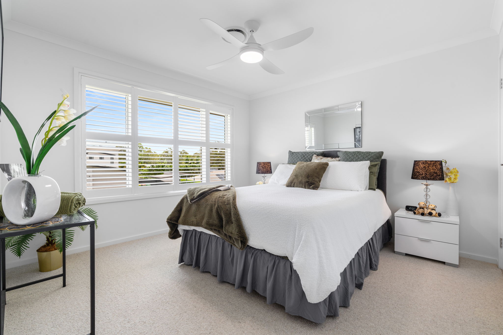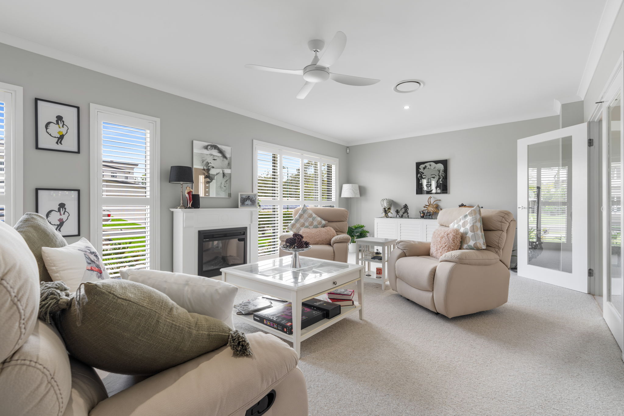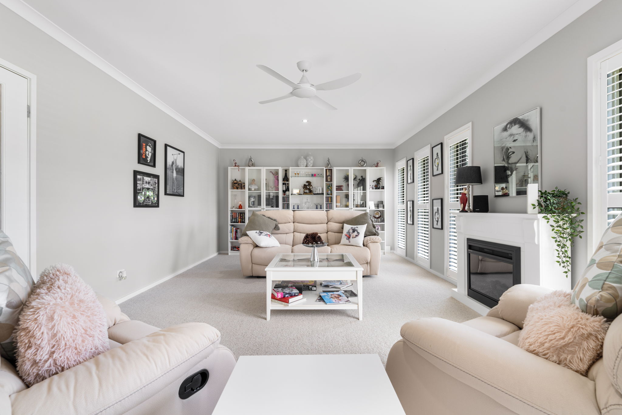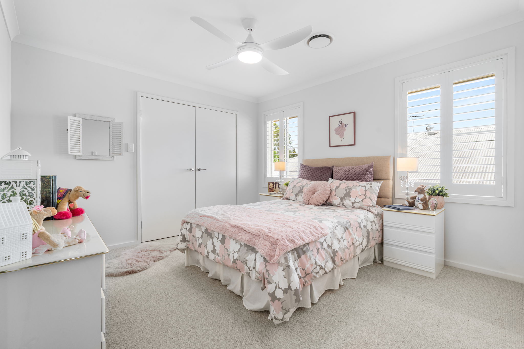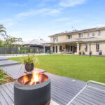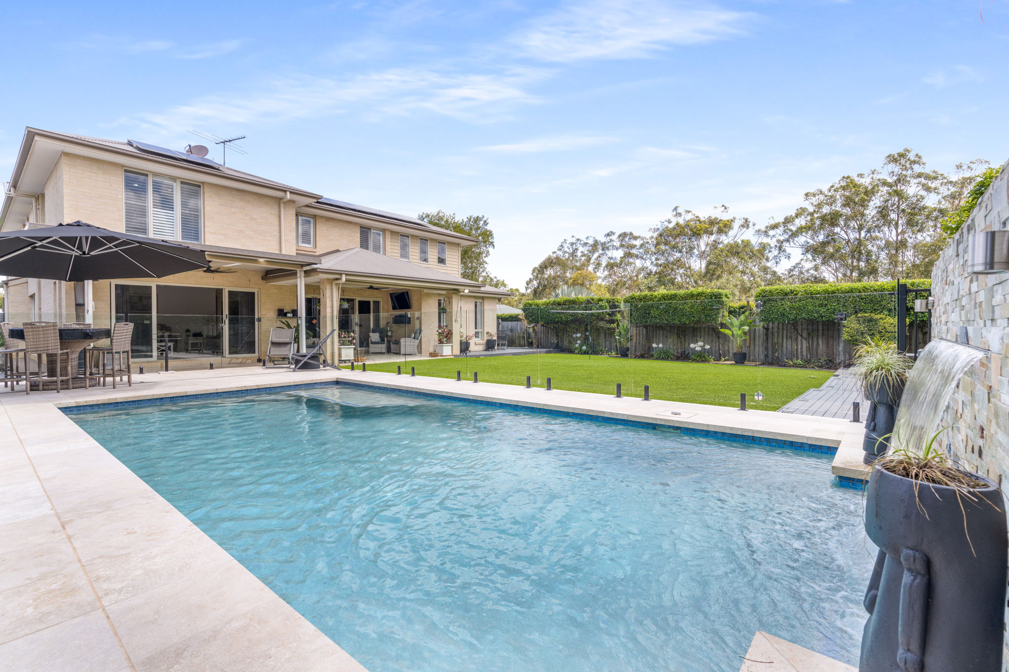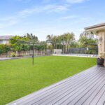 The living/dining space feature gorgeous, large glass sliding doors to further open up the home and create seamless indoor-outdoor flow. Connected to an alfresco that overlooks the beautifully landscaped backyard and sparkling inground swimming pool with a stunning water feature. The backyard also hosts a long deck that sounds the yard with a separate lounging area – the perfect position for a fireplace where you can curl up and enjoy the tranquility. This is an outdoor paradise for children and pets to play! The alfresco is thoughtfully appointed with an outdoor ceiling fan and roller blinds, ensuring year-round comfort and usability.