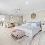 This home offers five generously sized, luxurious bedrooms – four upstairs, including the master, and one downstairs that serves perfectly as a private guest retreat. The master is a true highlight: an emphases on “Enormous” beautifully designed sanctuary with an oversized walk-in wardrobe and an indulgent ensuite featuring a double vanity which truly is enormous! – You’ll love the stunning natural stone tiles that elevate the ensuite, underscoring its quiet, refined luxury. This sophisticated, executive-style suite delivers a spa-like experience every single day. The upstairs also features a sitting room and study space for additional versatility, with plush carpet throughout this level is designed for total comfort.