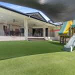Outside, you’ll find a covered alfresco area overlooking a large backyard and an inground swimming pool. Additional features include a covered play area with a custom playground, a purpose-built firepit with built in seating, an inground trampoline with protection matting, and a dedicated outdoor lounging terrace shaded by a sail. This no maintenance backyard caters to everyone in the family with plenty of versatility to creating your desired space.