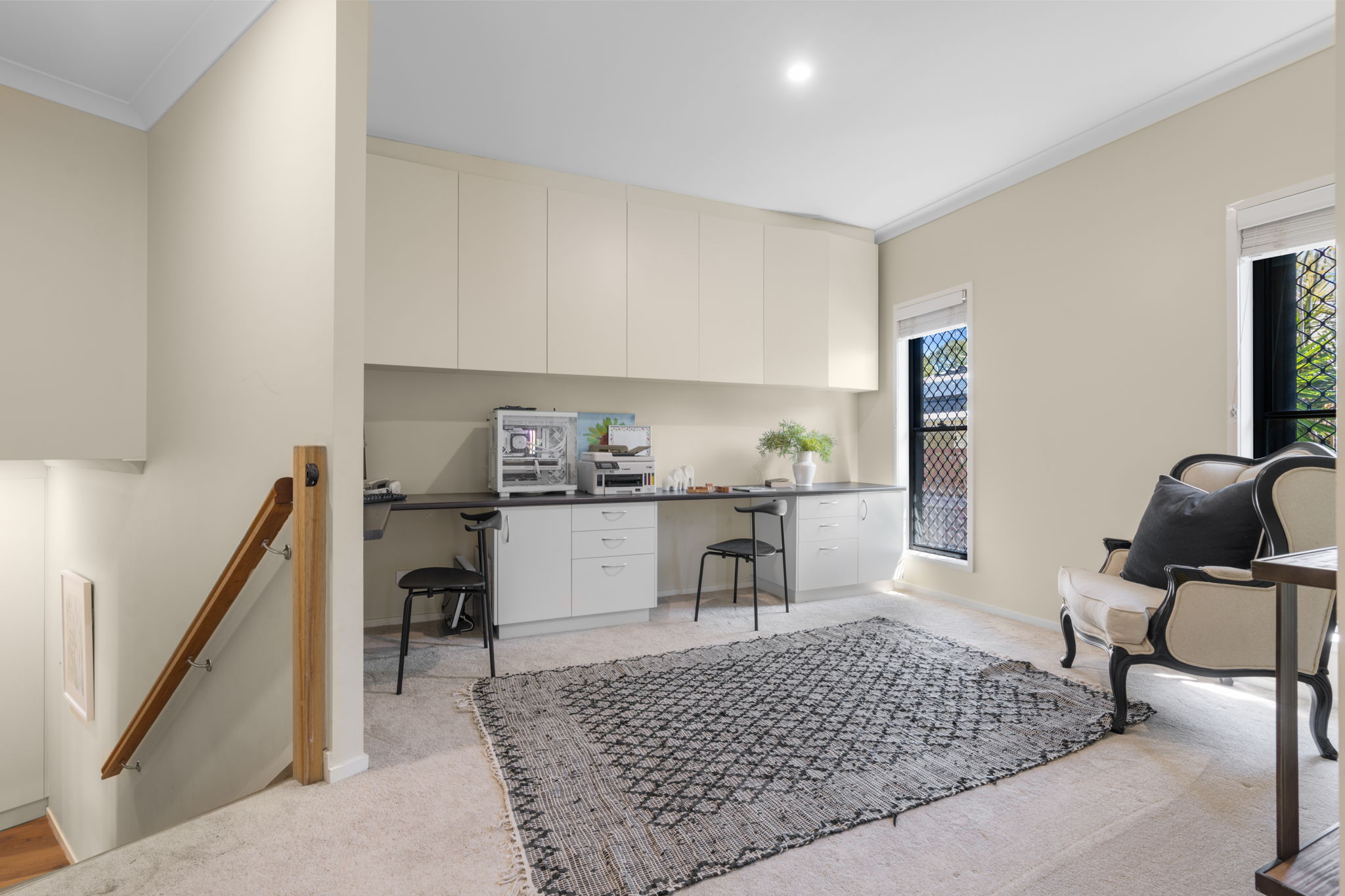 • Master suite on upper level with ensuite, walk-in robe, office, and private lounge