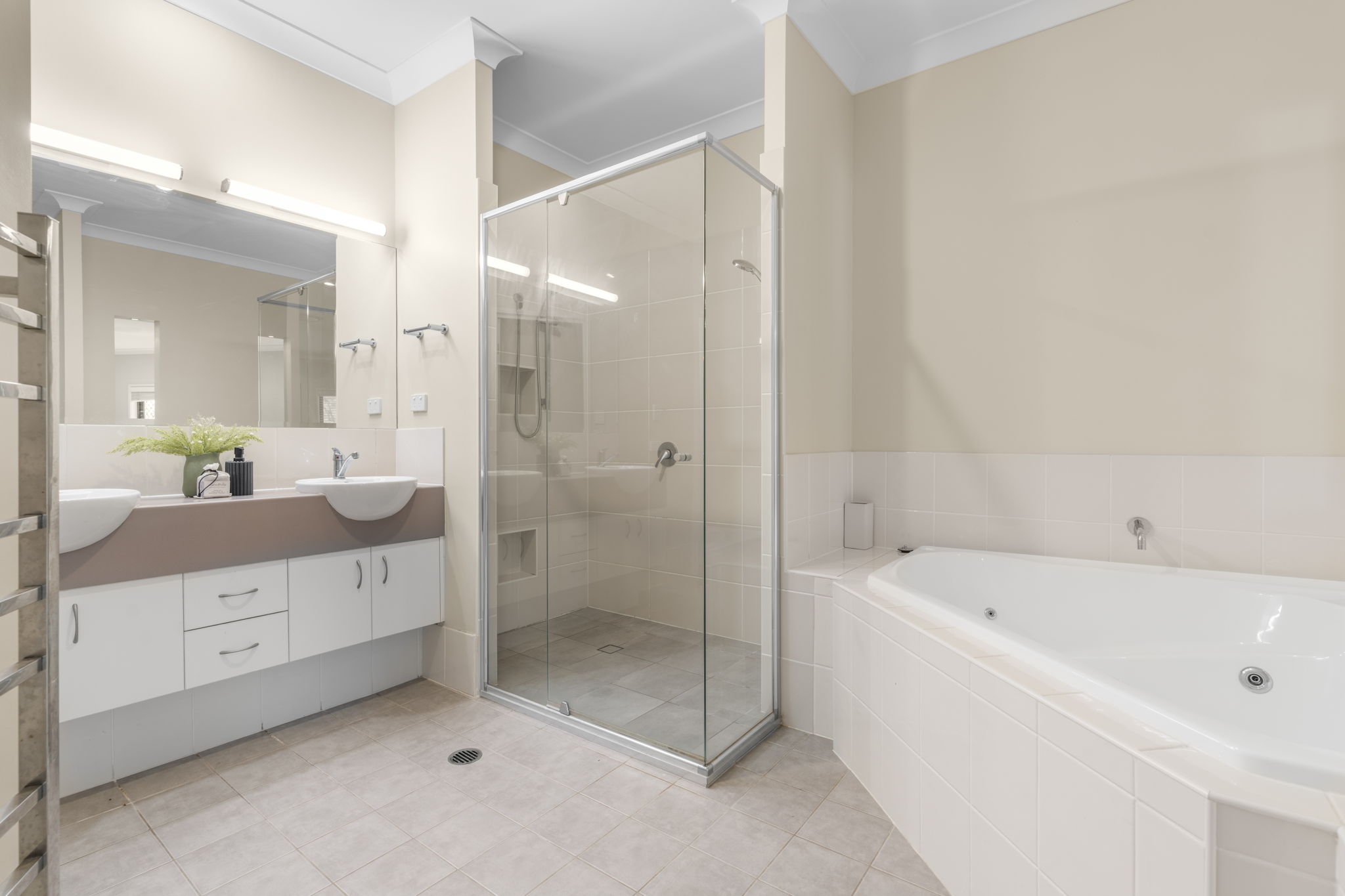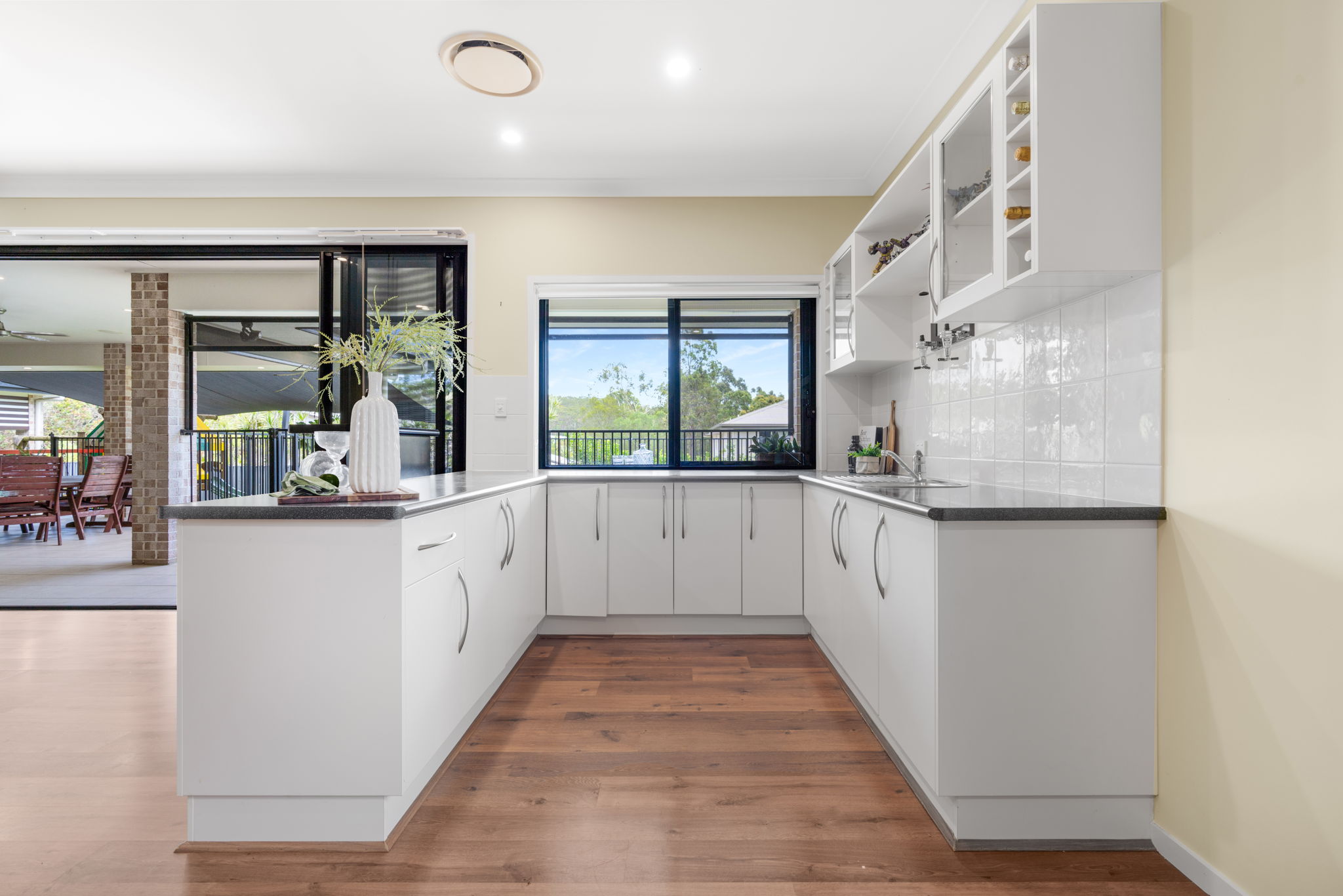 • Separate internal laundry with built-in storage cupboards, benches, and cabinets