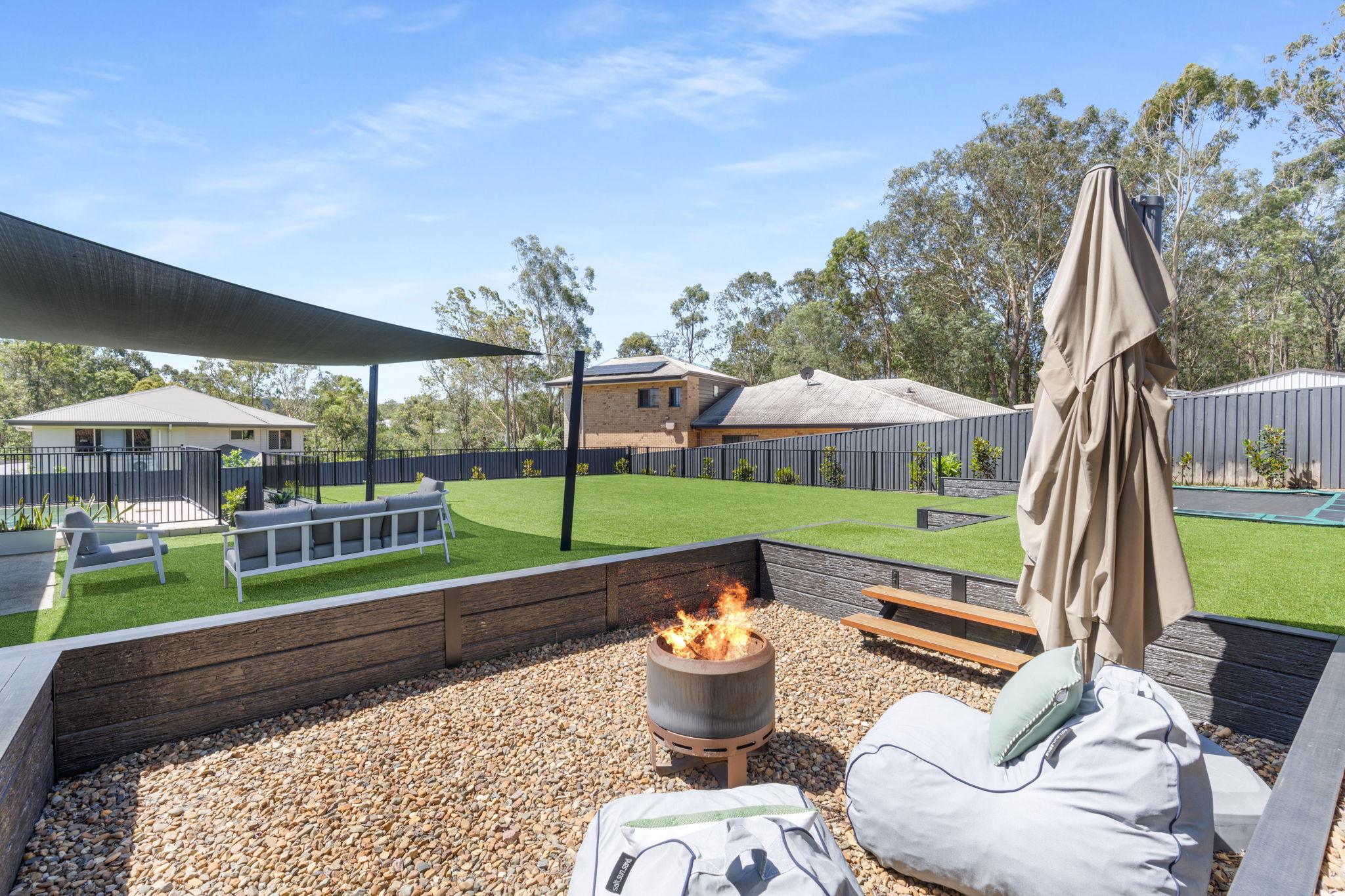 • For the Kids – Purpose-built firepit, inground trampoline