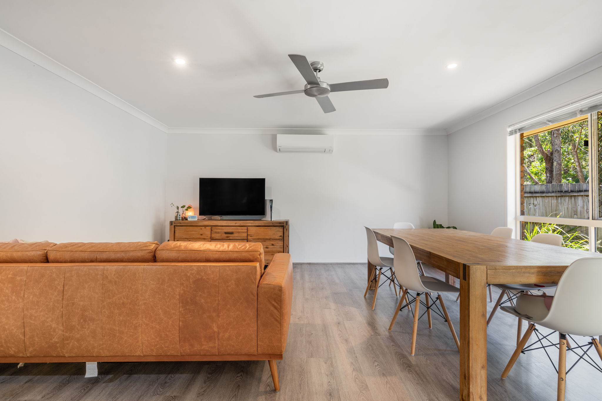 Showcasing an open-planned living – dining area flowing off from the galley style kitchen, and a spacious outdoor entertaining connecting to a generous sized backyard perfect for the kids and pets. The property is located at the end of the street with only one neighbour and next to the Hardwood Drive Nature belt, a lush bushland setting with walking tracks and surrounding parks.
